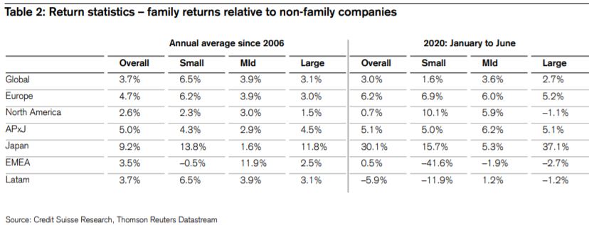 Недавнее исследование Credit Suisse показало, что с 2006 года инвестиции в семейные бизнесы в среднем на 3.7% более прибыльные чем инвестиции в прочие бизнесы. Причем тренд устойчиво существует уже многие годы.