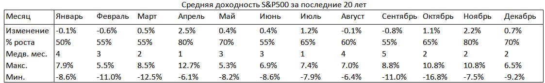 Такое явление особенно заметно в августе и сентябре. Обратим внимание на таблицу исторической доходности снизу.