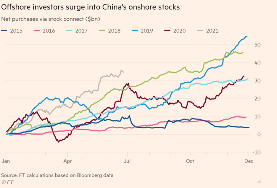 Сейчас, несмотря на политическую напряженность, глобальные инвесторы с начала года покупают китайские активы (источник), отчасти это вызвано включением Китая в глобальные индексы (приток с начала года 800$ млрд).