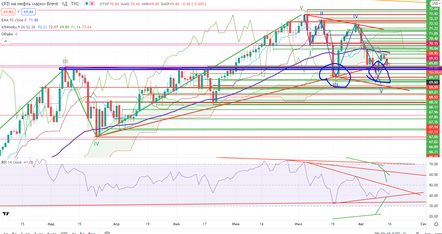 В нефти окончательно запутался, не понимаю где и в какой волне он находится, с этими ложными проходами я реально не понимаю в какую сторону торговать. Но эффект падения спроса со стороны Китая может оказать отрицательный эффект на нефть, так что в глобальном плане я скорее медведь, чем бык, просто нужны четкие стопы для продажи…