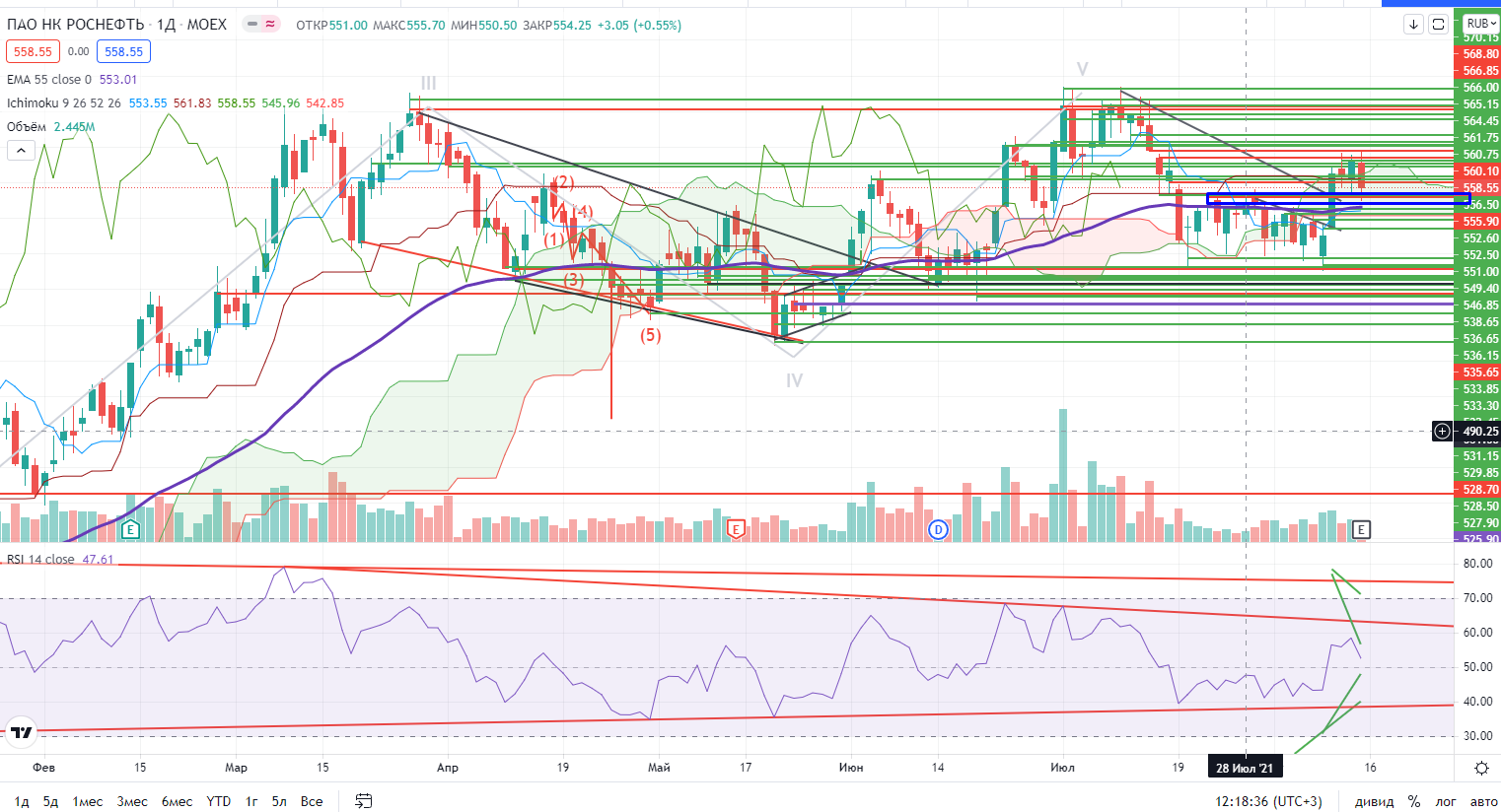 Роснефть можно с коротким стопом покупать в зоне 556-556,9, стоп 554- по концу дня!!! (https://www.finam.ru/analysis/marketnews/indeks-mosbirzhi-navernyaka-protestiruet-istoricheskiiy-maksimum-20210813-09200/ ) Сказано-сделано. Рекомендация та-же!