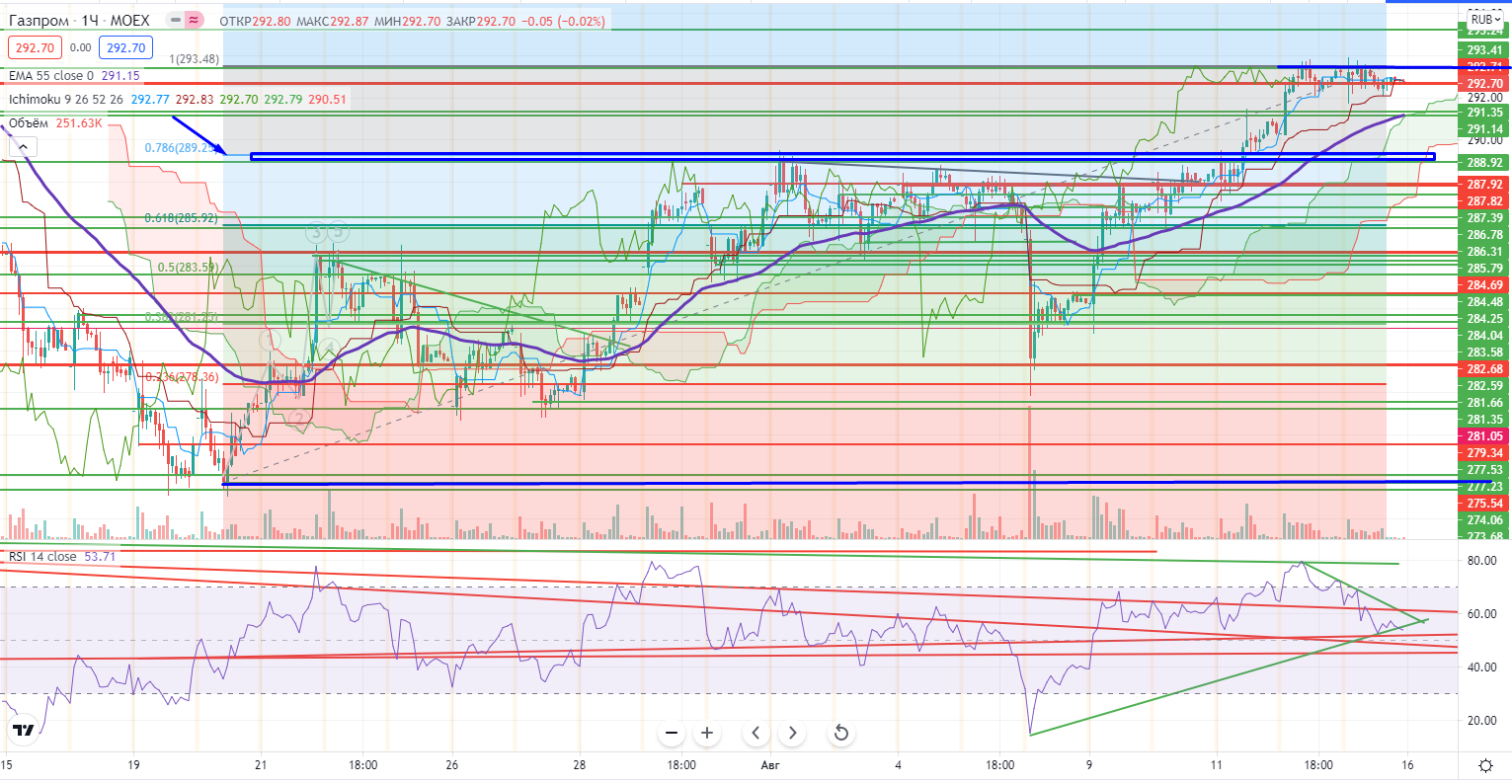 Газпром закрылся под верхней границей гэпа 292,86-293,83. Это не повод для «голого» шорта, но...