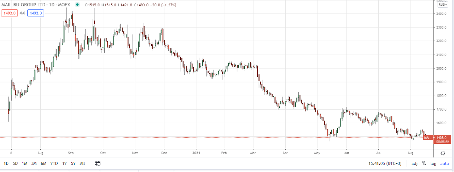 Зимой 2020 вышли результаты Mail ru за 3кв 2020, по итогу которых LTM EBITDA начала снижаться. На этом акции начали падать, и до сих пор этот тренд сохранялся, обесценив акции на 30%. Кстати, в ближайшем квартале (3-ем) тренд по EBITDA сменится снова ростом по нашим прогнозам.