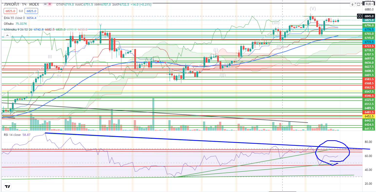 Лукойл на днях смотрится очень хорошо, но на часах он находится в жуткой дивергенции...