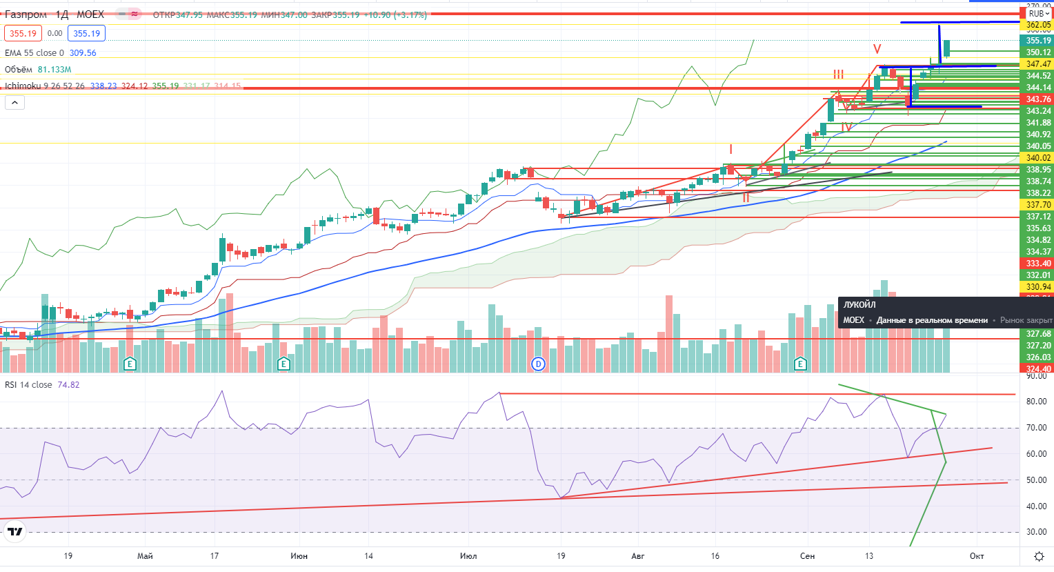 Мишень в Газпроме на днях = 361,1±.
