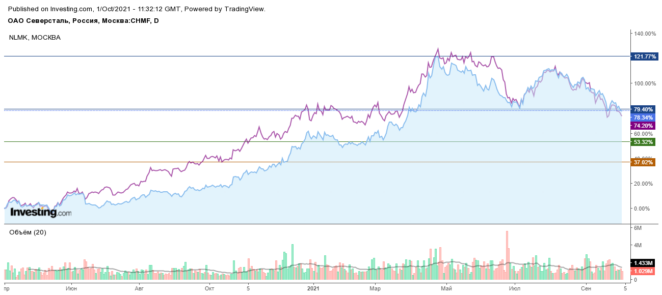 CHMF und NLMK нарисовали каждый по Эльбрусу (кто не в курсе - как раз двойная вершина). Согласно тайному учению это предрекает нисхождение до уровней 1165 и 185 соответственно. Имеются и подходящие уровни уже натоптанные жизнью: 190-198 для Новолипецка и 1270-1340 для Череповца.