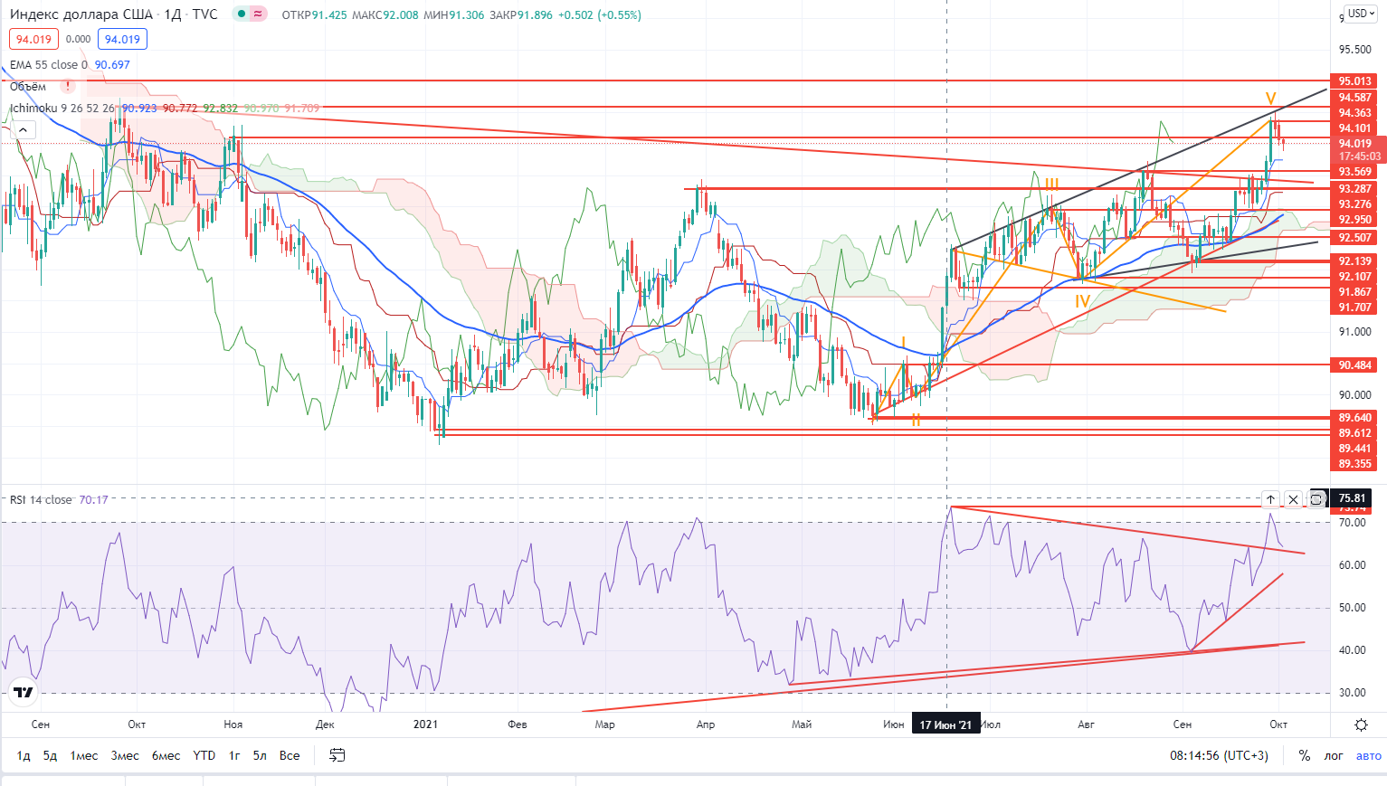 DXY пока находится в V-ой волне роста, и более того, есть попытка и остаться в этой волне. Рисуется пока начало коррекционного движения, но этого было достаточно для отроста коммодитиз.