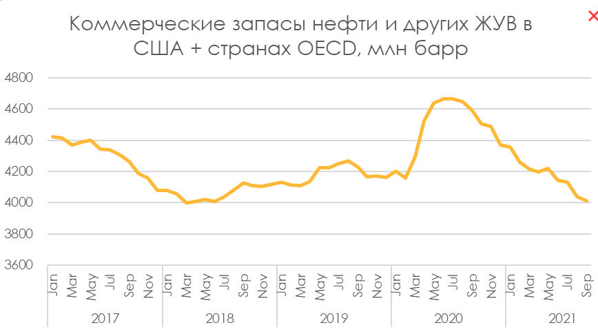 - Запасы находятся около докризисных уровней, при которых нефть торговалась около 60$/барр, то есть причина и не в них.