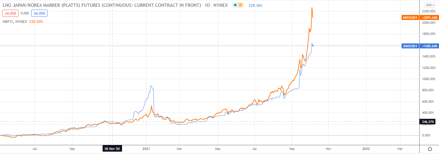 Вместе с ростом цен на уголь росли цены на газ в Азии, а за ней и в Европе: