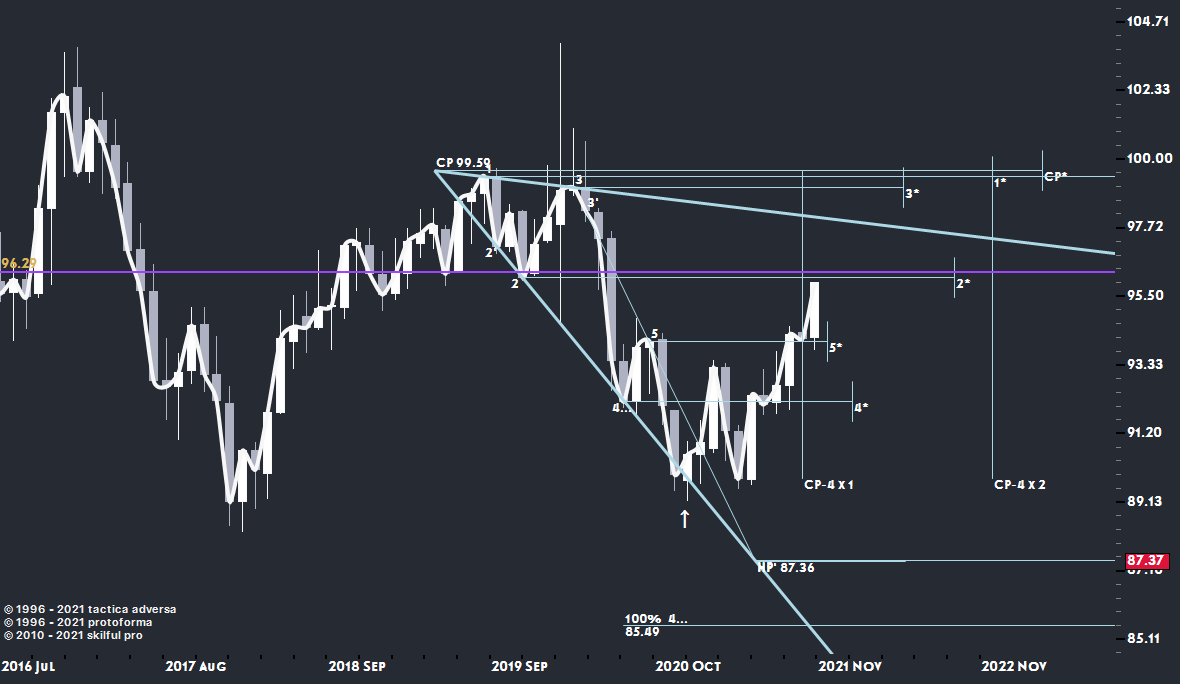 Сейчас индекс доллара подходит к серии уровней, годовой план, уровень по ценам закрытия: