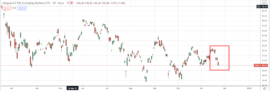 Это не связано с мировой массовой распродажей акций развивающихся стран (EM), что видно по динамике ETF на Emerging Markets: