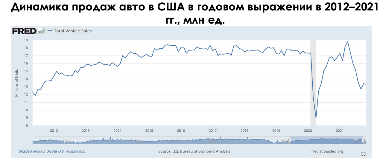 - продажи авто в США снизились до уровня 2012 года;