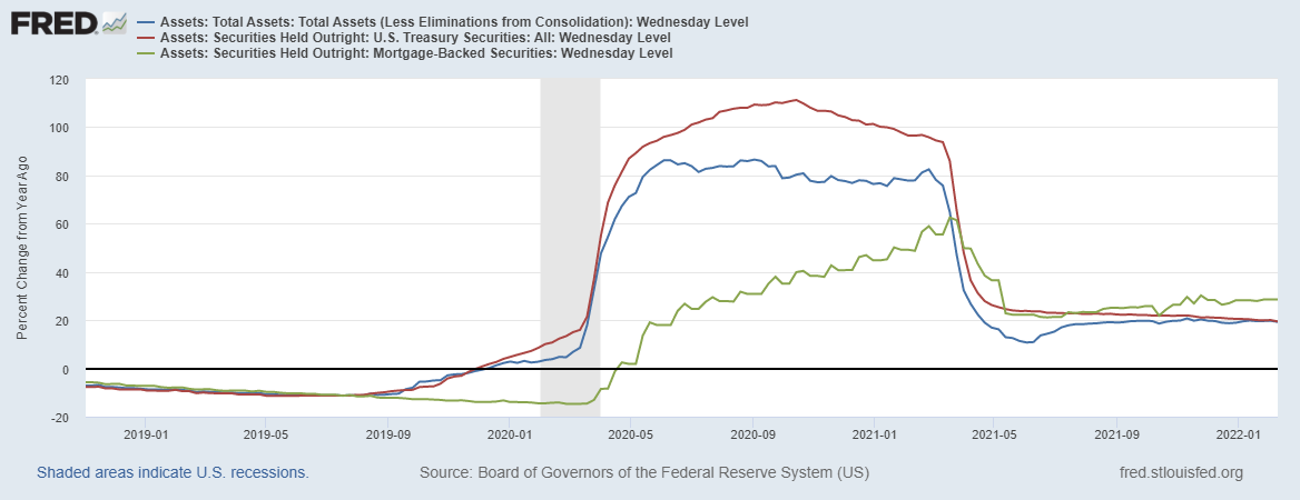 Синяя линия – баланс ФРС от года к году.