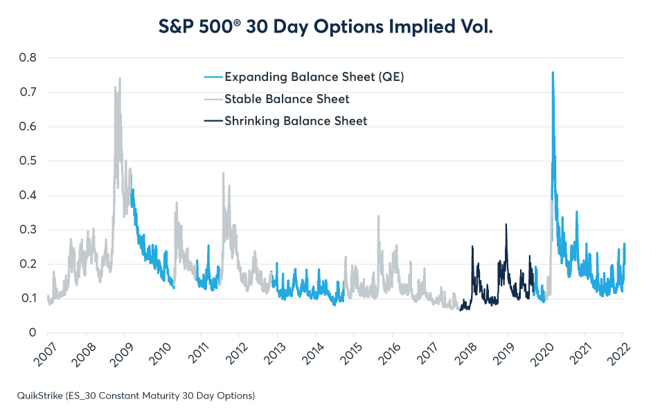 2. QE подавляет волатильность, в то время как QT ее повышает.