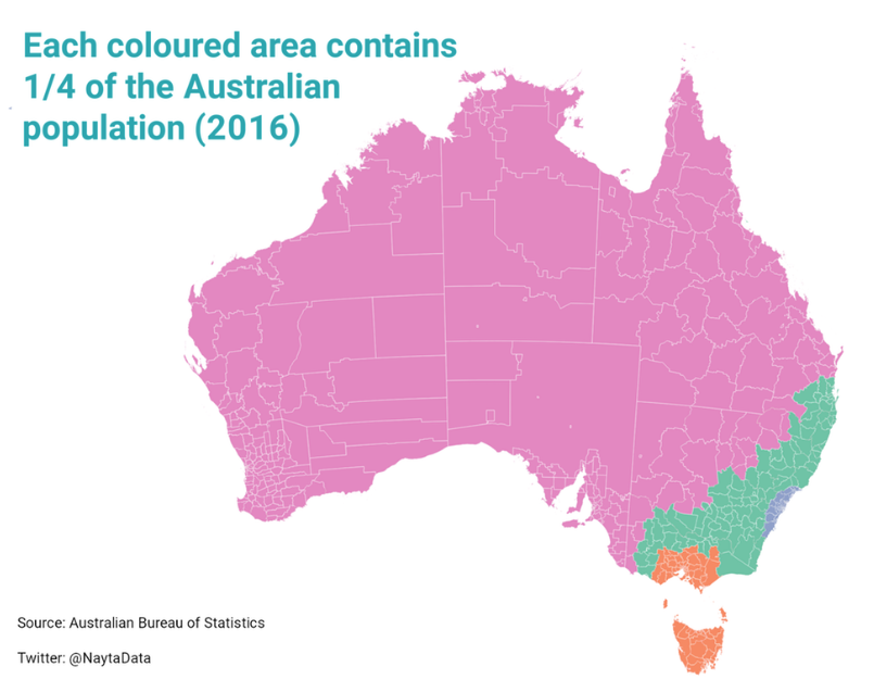 население Австралии, 75% населения живёт на юго-востоке страны:
