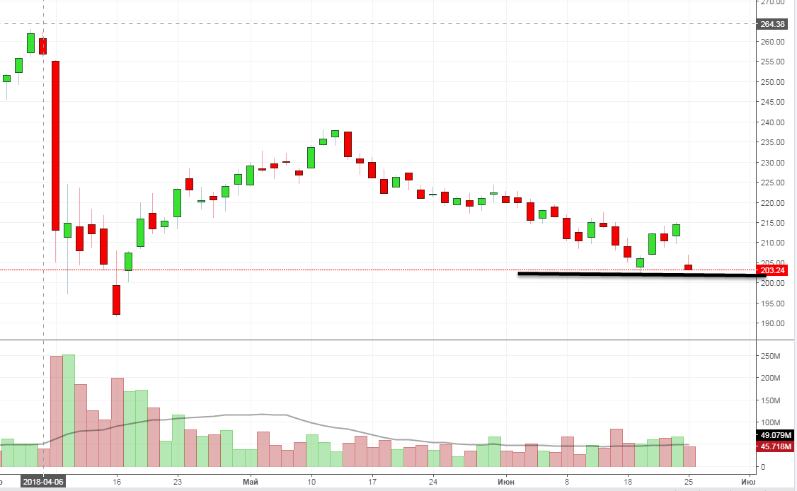В самом сбере же сегодня произошла дивидендная отсечка. В сбере район поддержки находится у 202 рублей. Куда скорее всего он и упадёт сегодня: