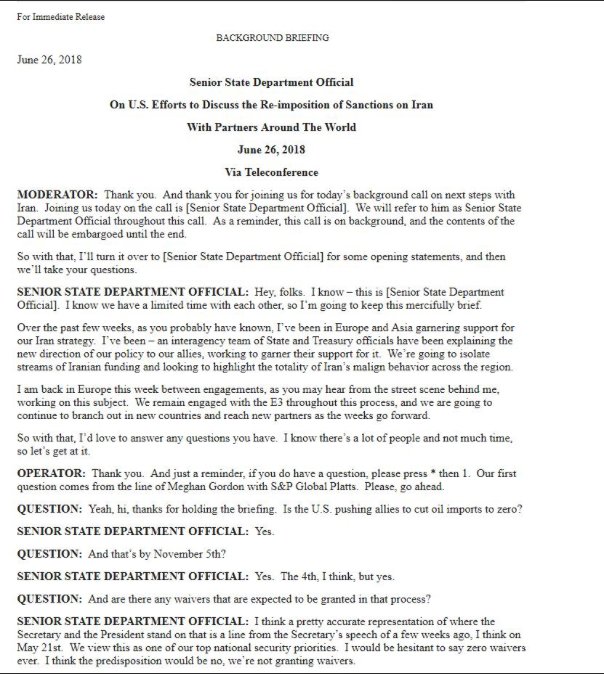 Сегодня цены на нефть улетели вверх после брифинга одного из чиновников госдепартамента США, на котором он сказал что США будут вводить санкции против компаний закупающих Иранскую нефть после 4 ноября.