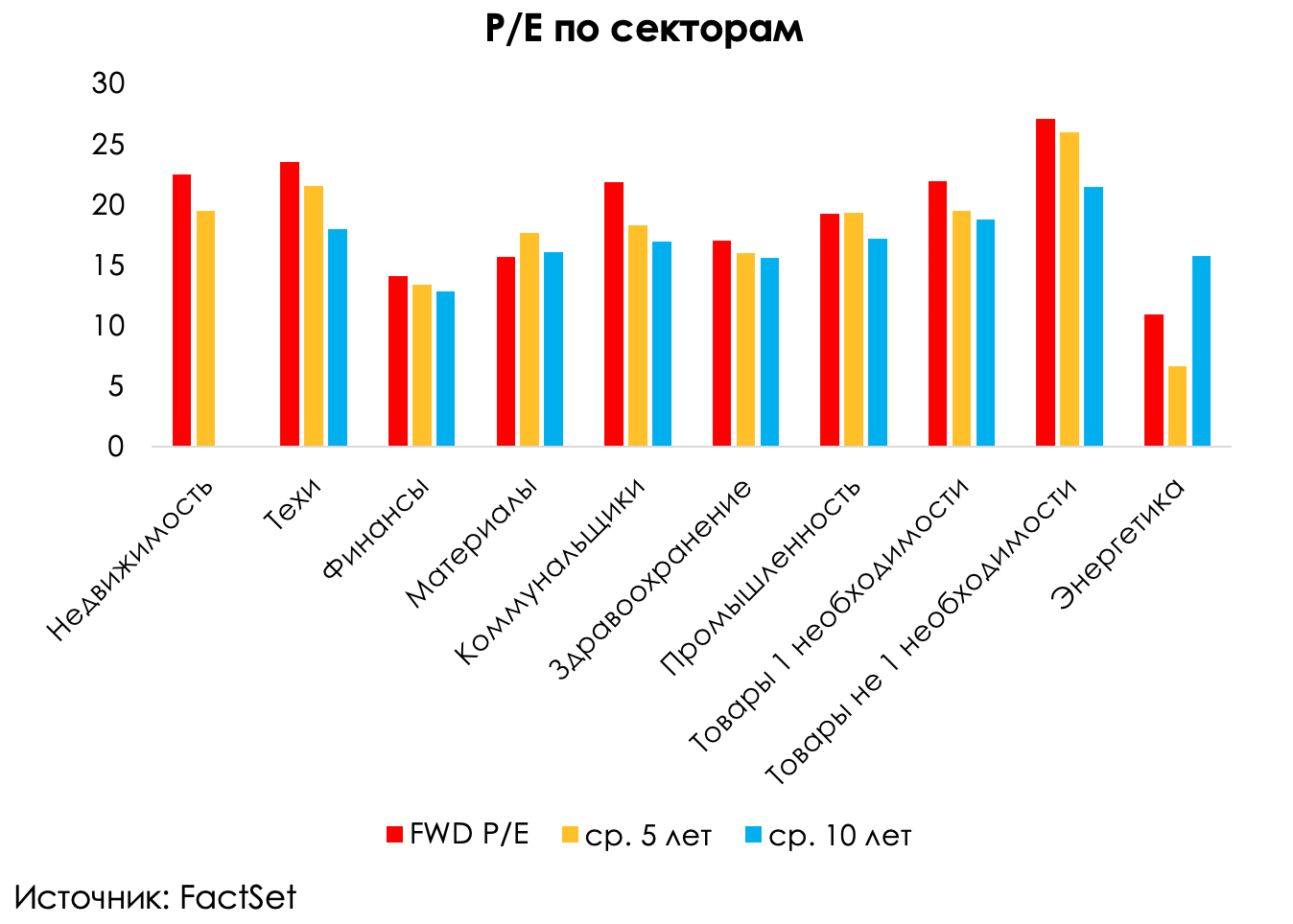 Однако столь высокие мультипликаторы постепенно будут схлопываться по мере публикации финансовых результатов. Скорее всего, мы уже не увидим бурного роста рынка в ближайшее время. Более того, пониженные ожидания компаний могут подтолкнуть к падению акций и индексов в США.