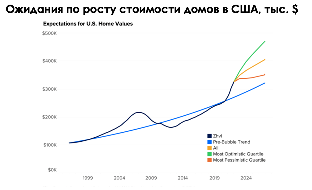 Сейчас на рынке рекордно низкое предложение домов для строительства (менее 1 млн домов). Согласно оценке Zillow со ссылкой на опрошенных экспертов отрасли, восстановление запасов домов до уровня 2019 года ожидается не ранее 2023 года в связи с медленной нормализацией цепочек поставок в США.