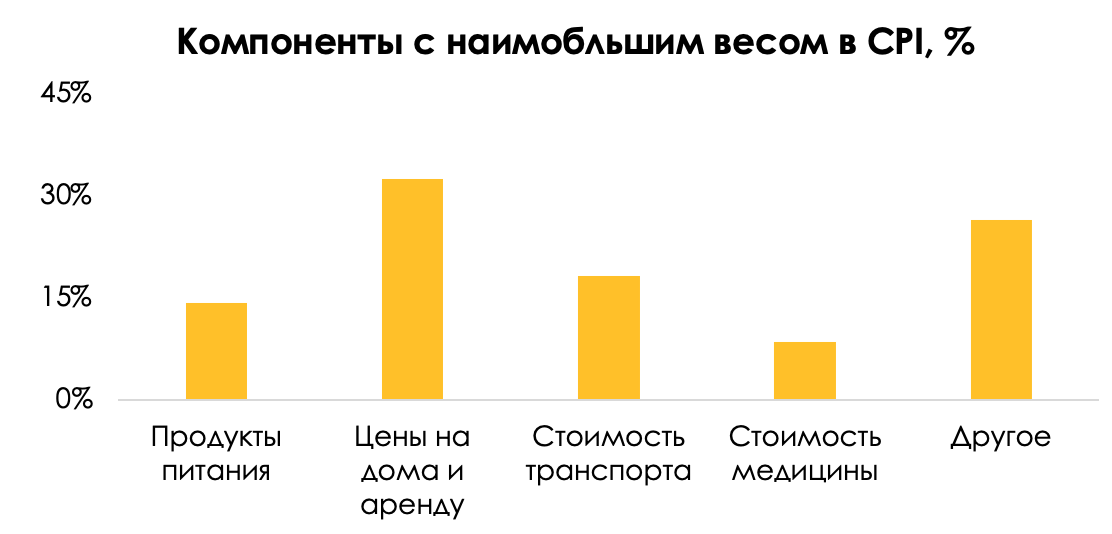 Рынок жилья в США в значительной степени влияет на инфляцию в стране. И это не просто так. Вес стоимости недвижимости и аренды занимает около 32% в индексе потребительских цен в США, что является самым значительным весом после индекса стоимости транспортировки и продуктов питания.