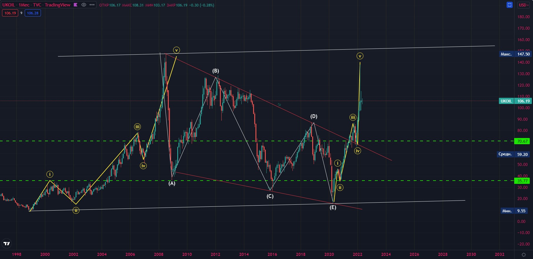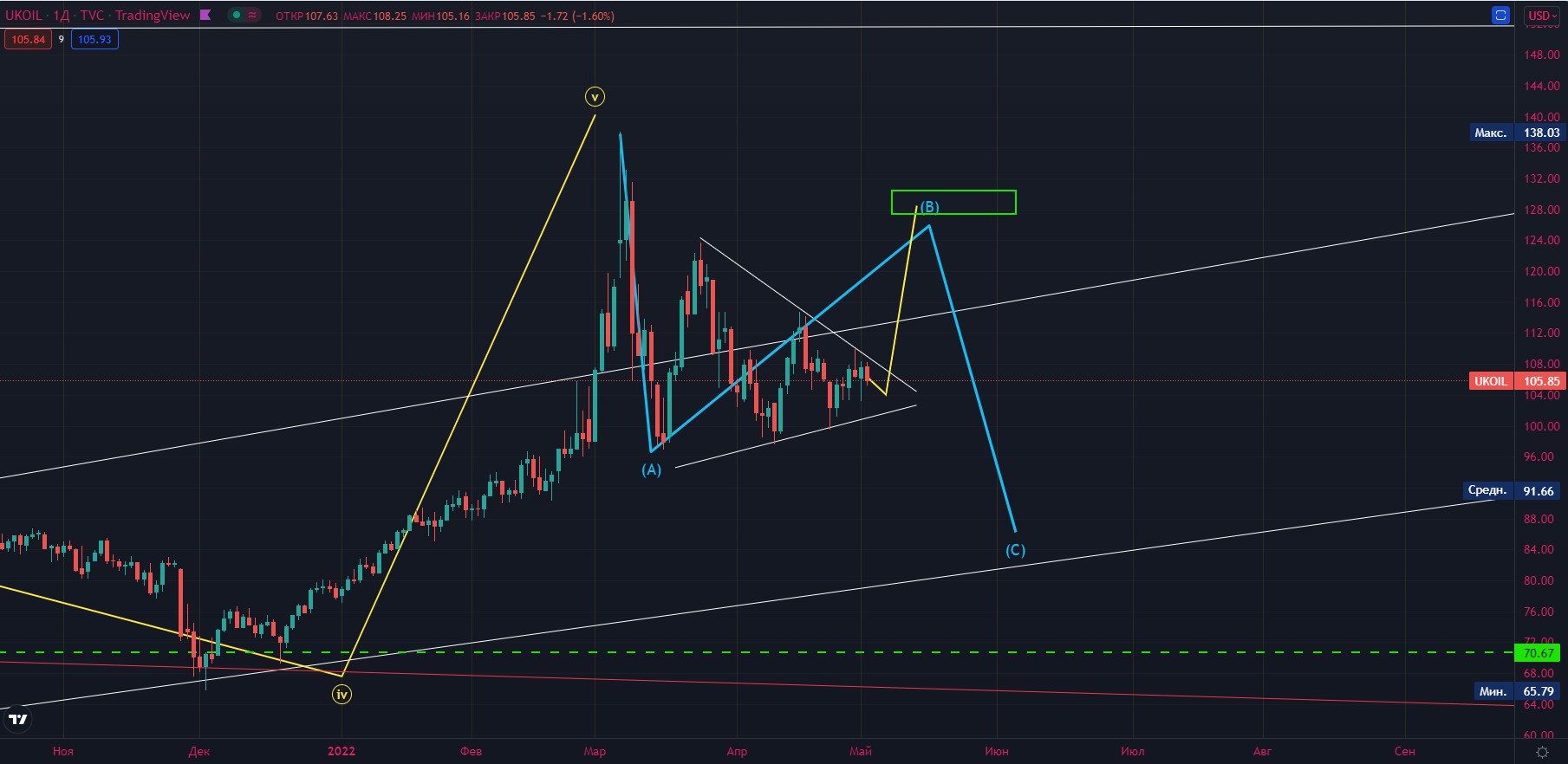 Второй сценарий это рост в район 120-130 и разворот. Здесь также допускается локальное снижение. Мы покупали в районе 102.
