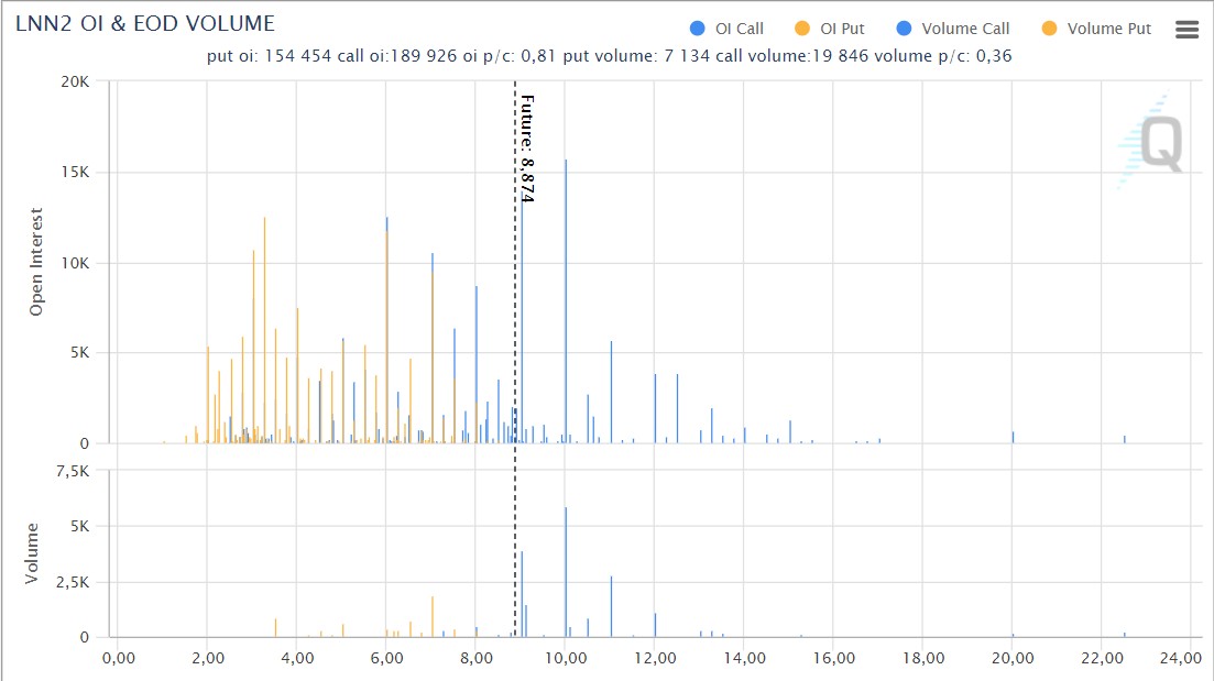 Конкретно в последние дни набирают коллы с страйками 9 и 10 в ближайшем контракте который истечет в июне. Набирают коллы 10 и 10,50 с экспирой в июле.