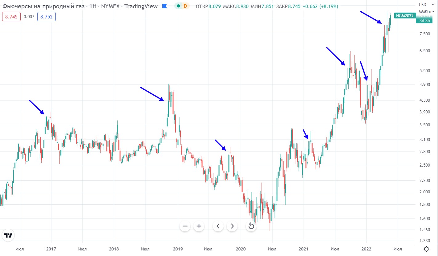 Учитывая что мы выросли с лоев по газу на 450%, и что в США нет такого острого энергетического кризиса как в Европе (по всем известным причинам) думаю шортануть газ. Стоп ставить за максимум мая, или хвоста)))