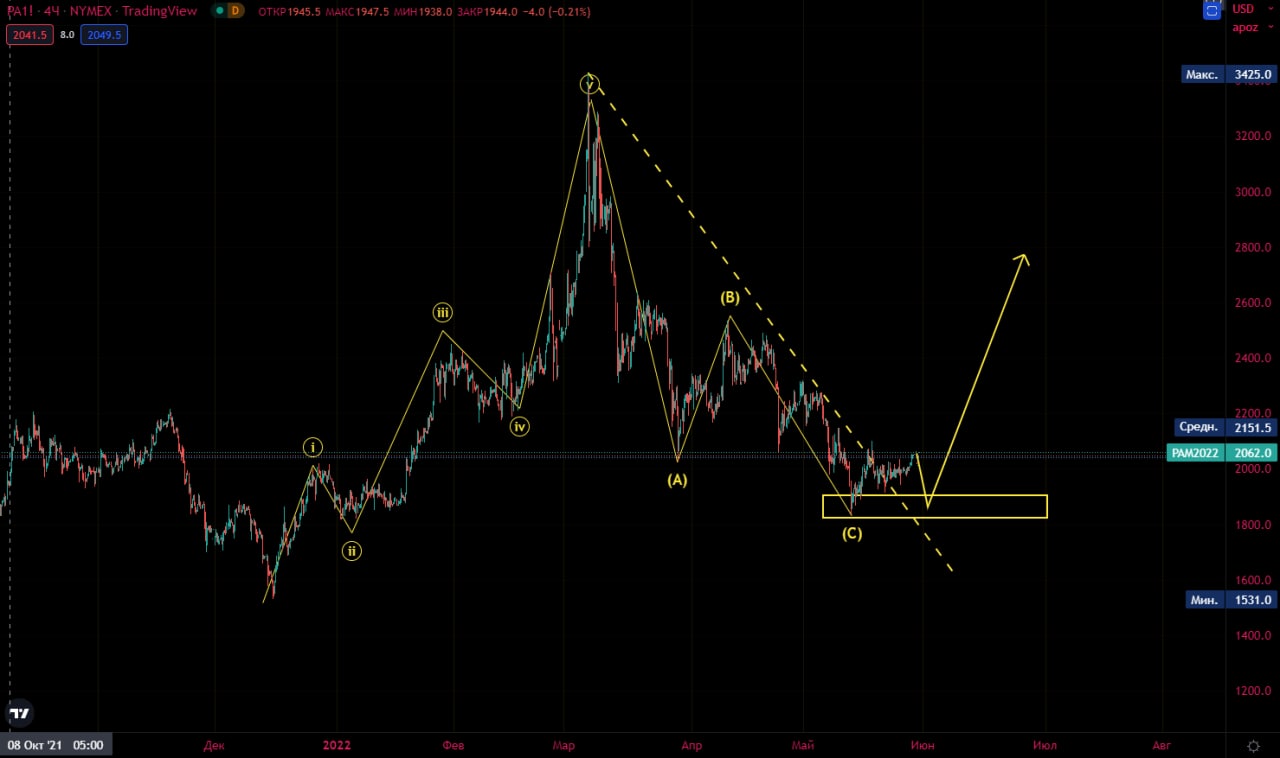 Еще с 20 года я ждал, когда палладий завершит крупную плоскую коррекцию и покажет таки отскок вверх. А в декабре 21 года это наконец-то произошло .