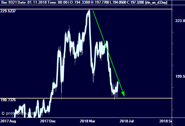 В свете последних намечающихся событий и возможного выхода США из НАТО и выпивки на брудершафт в Хельсинки сами знаете с кем решил я посмотреть на акции небезызвестных компаний Raytheon Co и Lockheed Martin Corp производящих вооружение. После стремительного роста ( навязывания всем своих услуг ) откат составил 17 и 18 %% - ов соответственно: