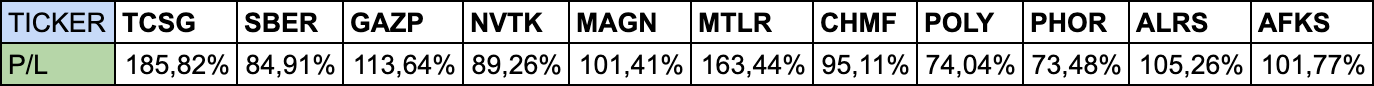 Результаты бектеста за последний год.