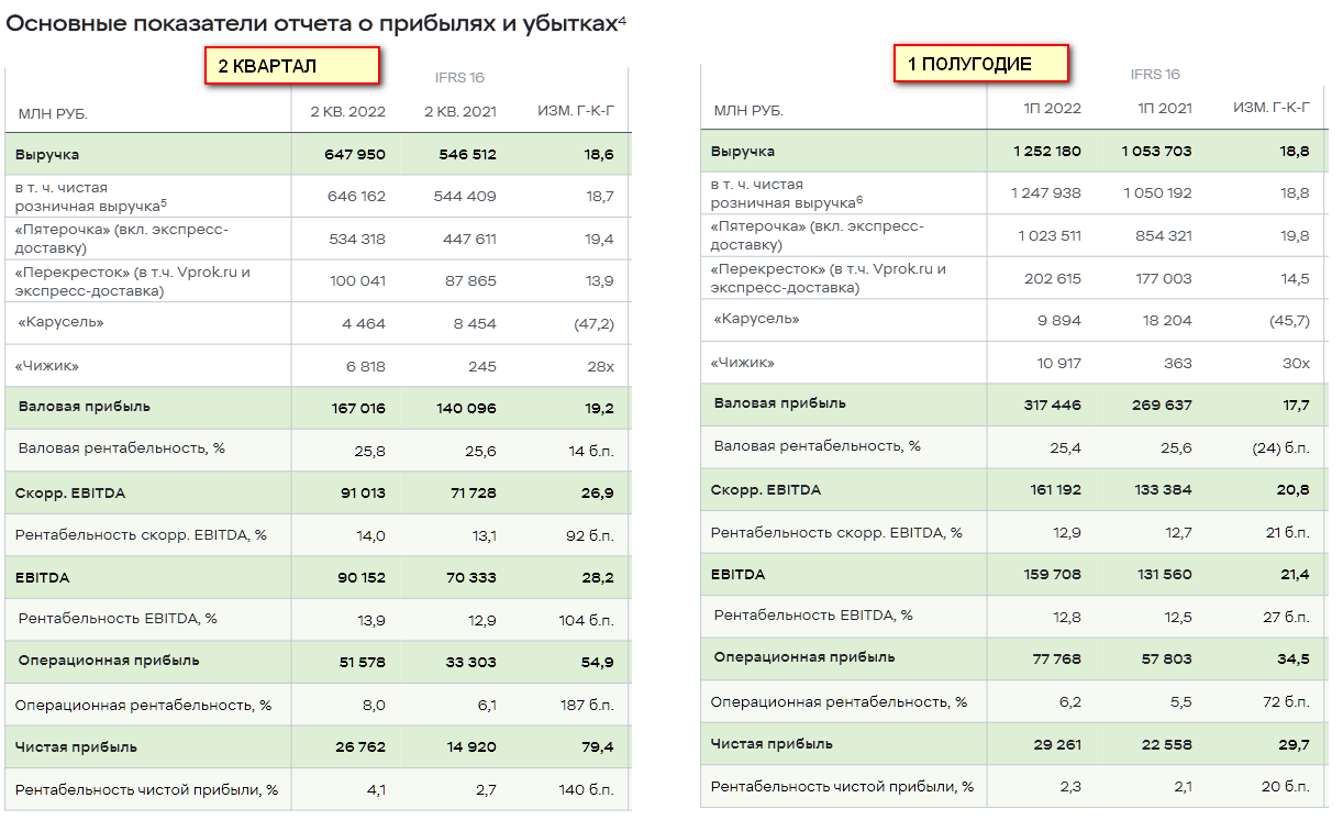 Один из лидеров Российского продуктового ретейла отчитался за 2 квартал и первое полугодие 2022 года.