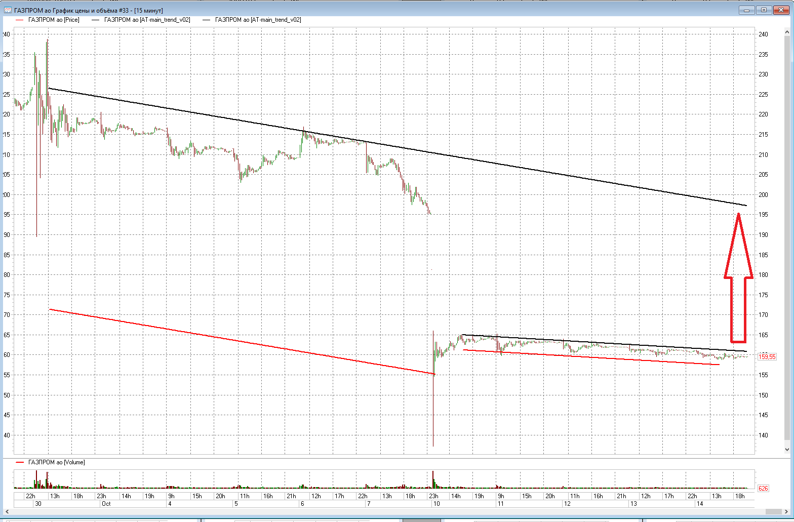Ситуация по Газпрому следующая. Видно, что он консолидируется. Видно что может начаться мощное движение в обратном направлении вверх телеграм