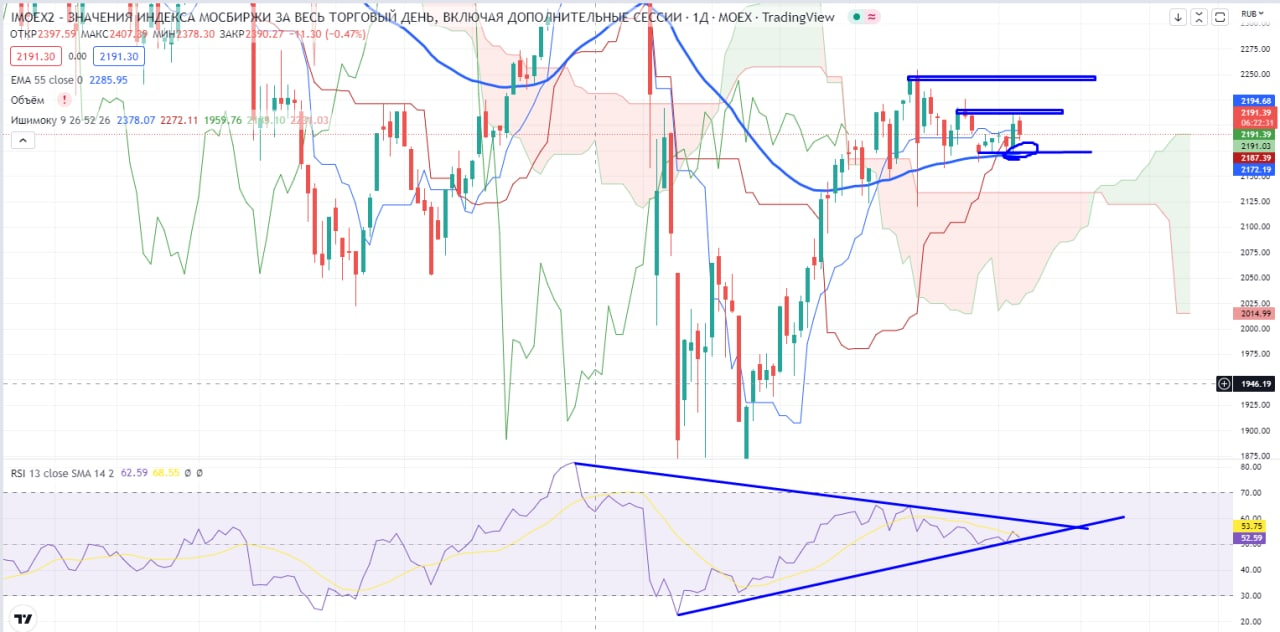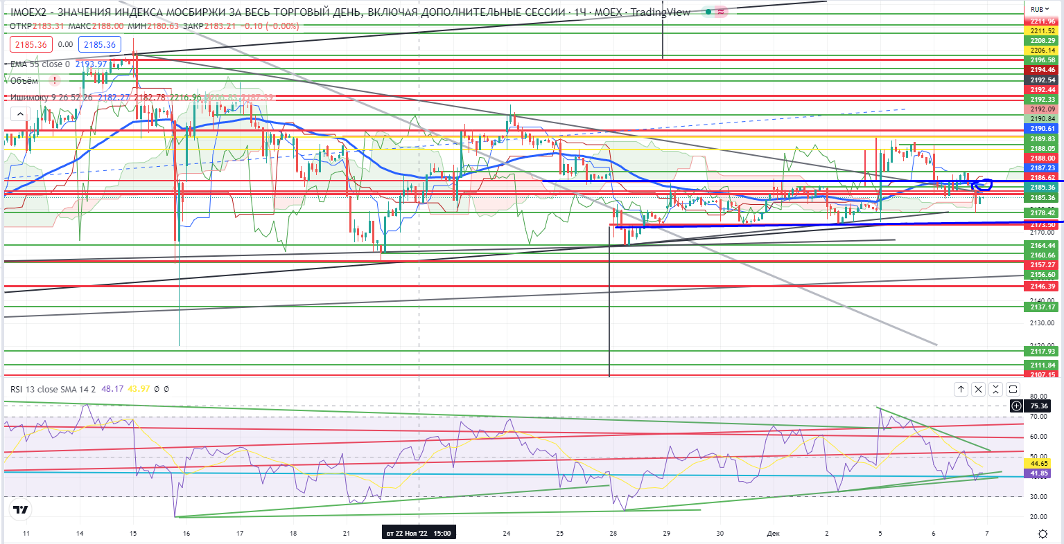 Индекс ММВБ на днях продолжает торговаться в канале 2174 (55ЕМА)-2243 (возможно канал сужен до 2211). Памп в Сбере на получил продолжения (пока, по крайней мере). Да и другие бумаги (Роснефть и ГМКН) отыграли памп накануне. Ничего в глобальном плане не поменялось, за исключением того, что на часах индекс ММВБ снова вернулся в зону неопределенности 2174-2192(что это, влияние падающей нефти и Америки, так и хочется сказать «ПРОЗРЕЛИ»))… Рынок продолжает быть крайне тонким, но еще раз повторю, ничего глобально не поменялось со вчерашнего дня!!!