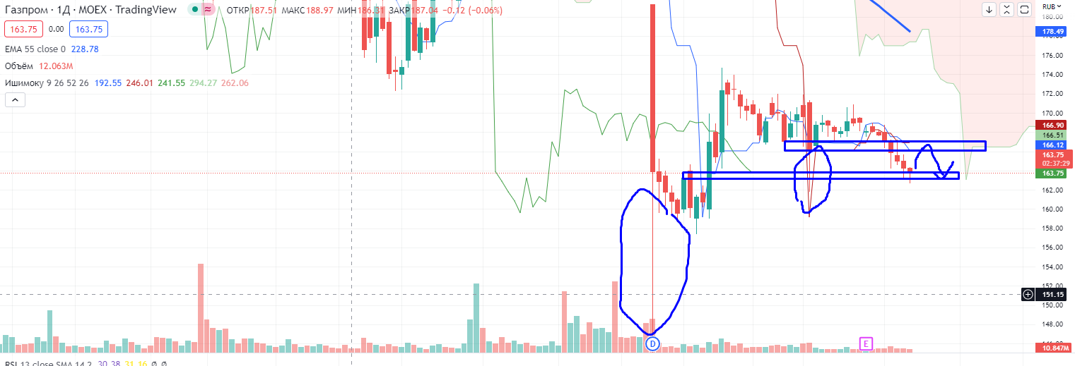 Для меня локально торговля от лонга закончена (пока по крайней мере), жду отскока вверх, чтобы шортить Газпром.