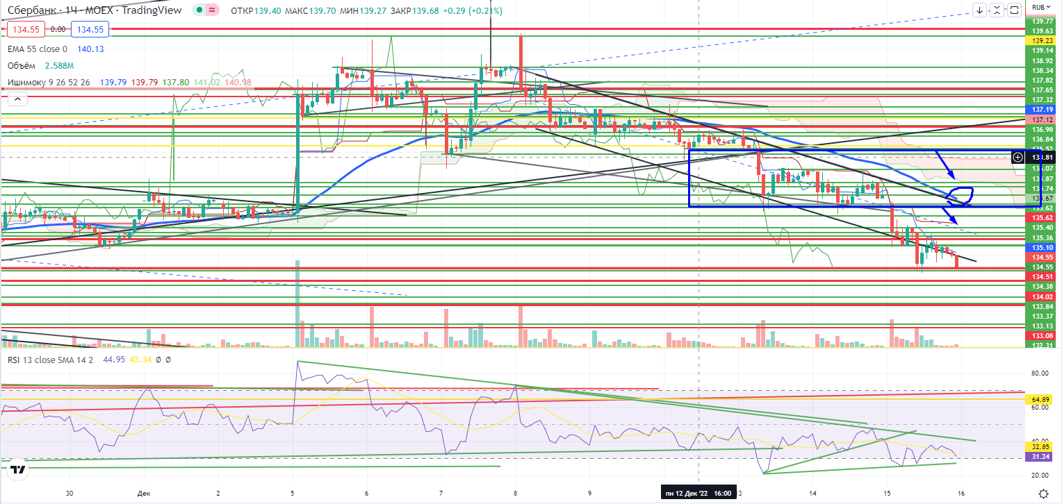 Т.к. основная тенденция вниз, Сбер на часах можно продавать в широкой зоне 137-139,18 (тут все), стоп 139,7+.