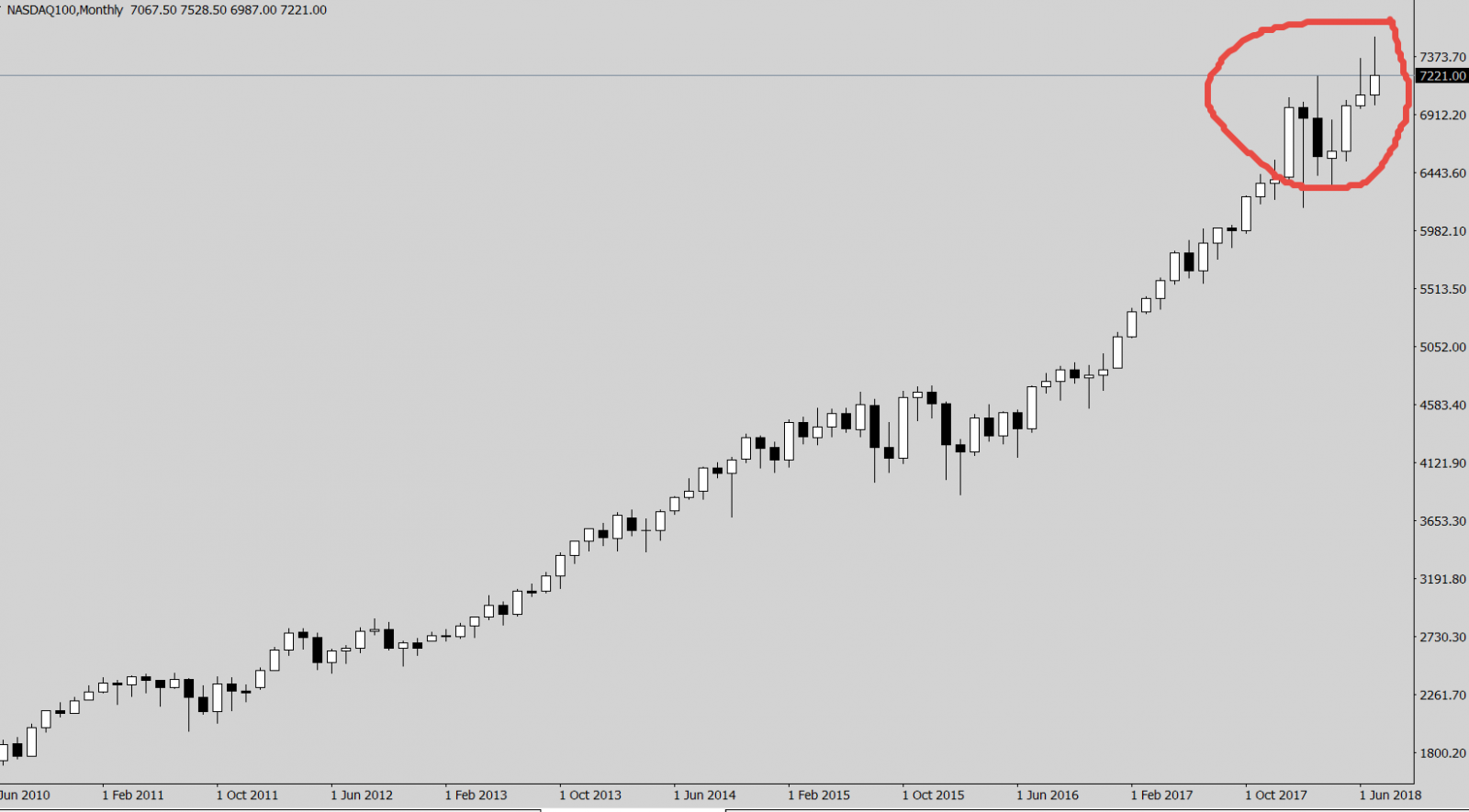 Месячный график NASDAQ. Очень похоже на глобальный разворот.