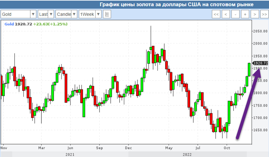 Reuters о более глобальным - " Цены на золото достигли более чем восьмимесячного пика в пятницу, удерживаясь выше ключевого уровня в 1900 долларов за унцию, поскольку замедление инфляции в США породило надежды на более медленное повышение процентной ставки Федеральной резервной системой."