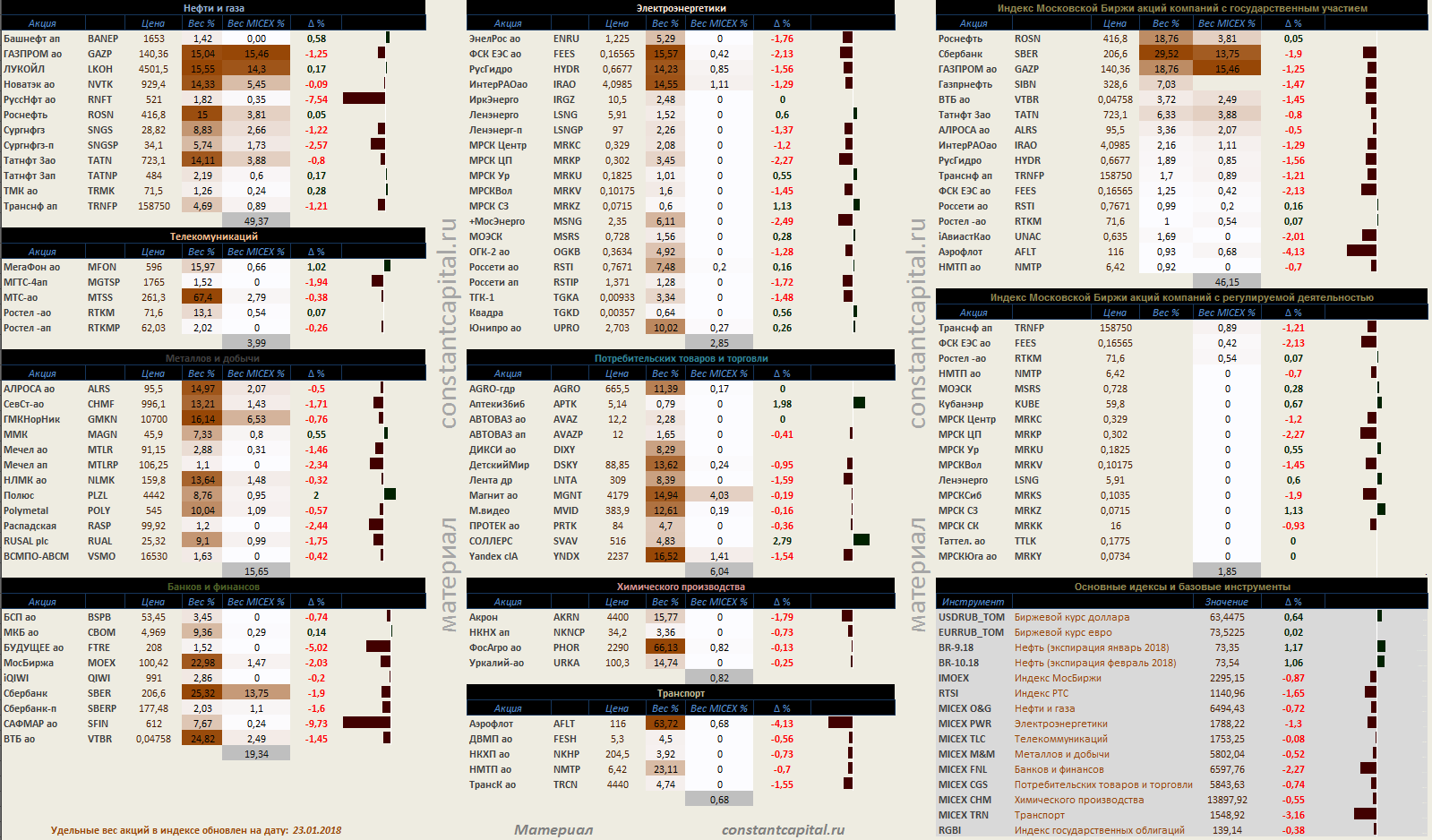 Динамика акций за текущий день, в структуре отраслевых индексов Динамика акций за текущий день, в структуре отраслевых индексов, и индексов государственного сектора. полноформатная картинка — http://constantcapital.ru/?p=13692 03.08.18 02:21 2945 constant.capital. +2 Комментарии Нет комментариев. Ваш будет первым! Войдите или зарегистрируйтесь чтобы добавлять комментарии
