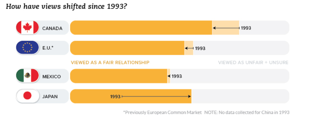 Здесь приведены данные опросов американцев. Жёлтый смайл - количество американцев считающие торговые отношения с регионом справедливыми и красный несправедливыми соответственно: