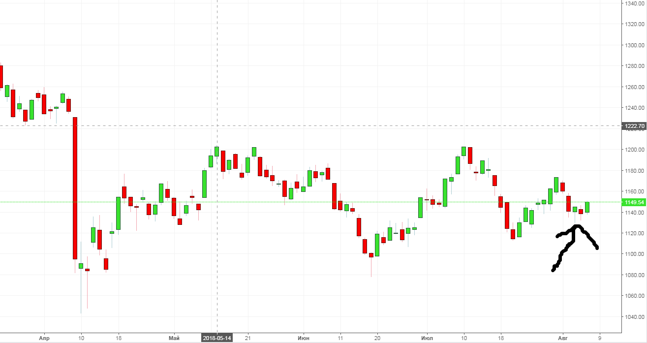 При зыкрытие сегодняшнего дня на хаях целью данного движения может являться обновление последнего локального максимума у 1180.