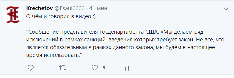 Мысль по санкциям: Сама новость безусловно негативная. В тоже время она может привести либо к тому что будут отложены санкции конгресса, либо они будут приняты но в более мягкой форме. Что уже будет позитивом для рынка. Это всё я более подробно описывал в видеоролике в предыдущем посте. Сейчас уже есть подтверждения некоторых мыслей оттуда: