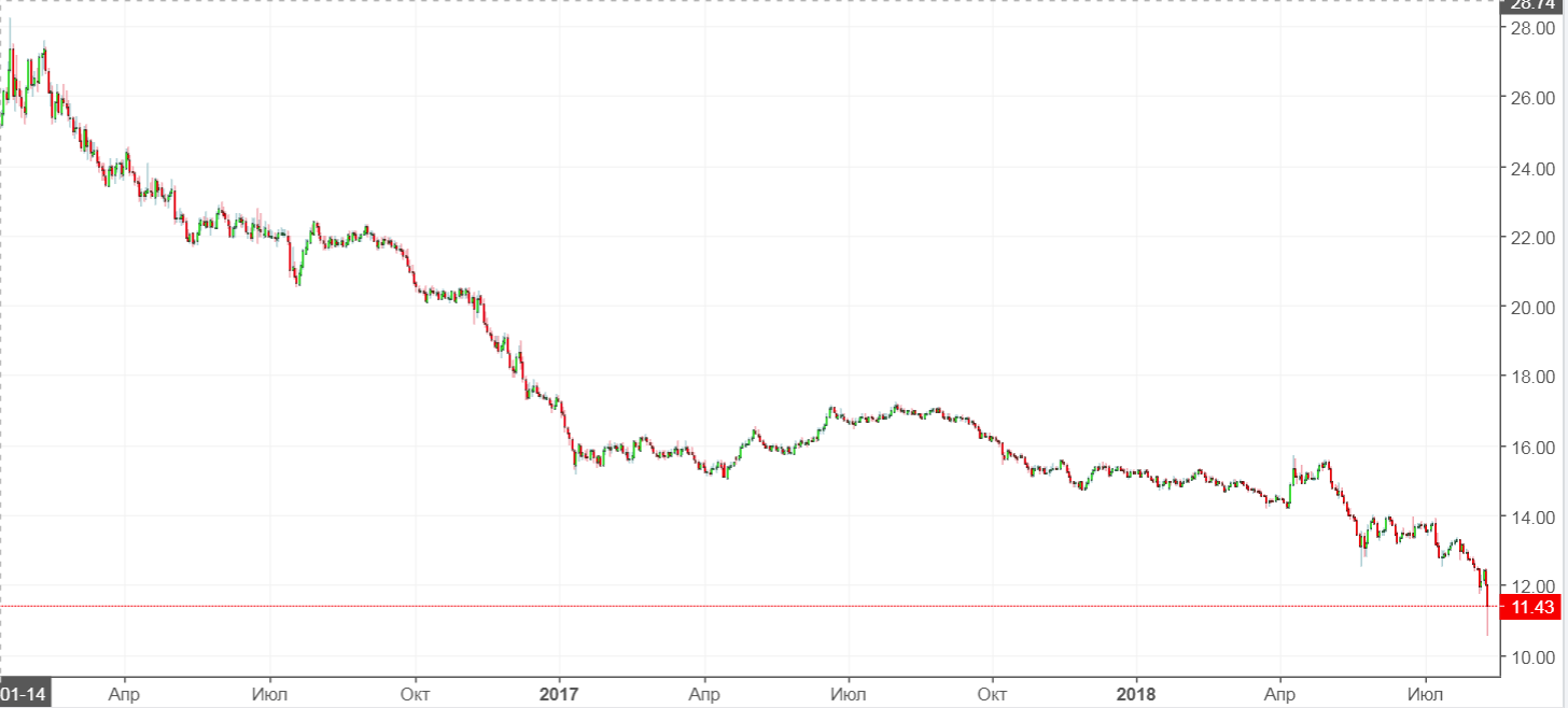 Рубль сегодня сильно укрепляется. И укрепляется он... к Турецкой Лире. Лира же просто сильно валится к рублю TRY/RUB :
