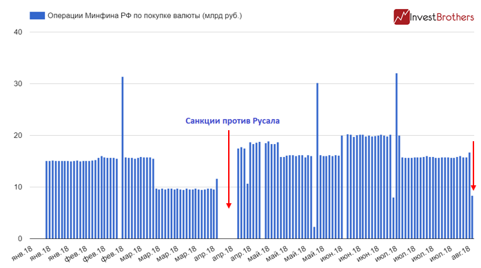На фоне серьезной девальвации рубля ведомство снизило объем операций по покупке иностранной валюты с рынка. Вчера, 09 августа, вместо 16,7 млрд рублей было потрачено 8,4 млрд.