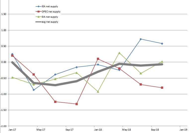 Нетто предложение в нефти по разным прогнозам. Индия урежет импорт?