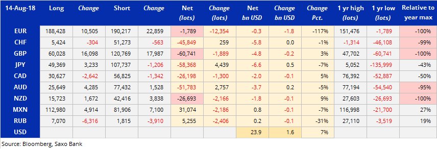 Наибольшее изменение было по позициям против Евро. Нетто позиции на этой неделе сменились с нетто лонговых на нетто шортовые по отношению в отношении евро: