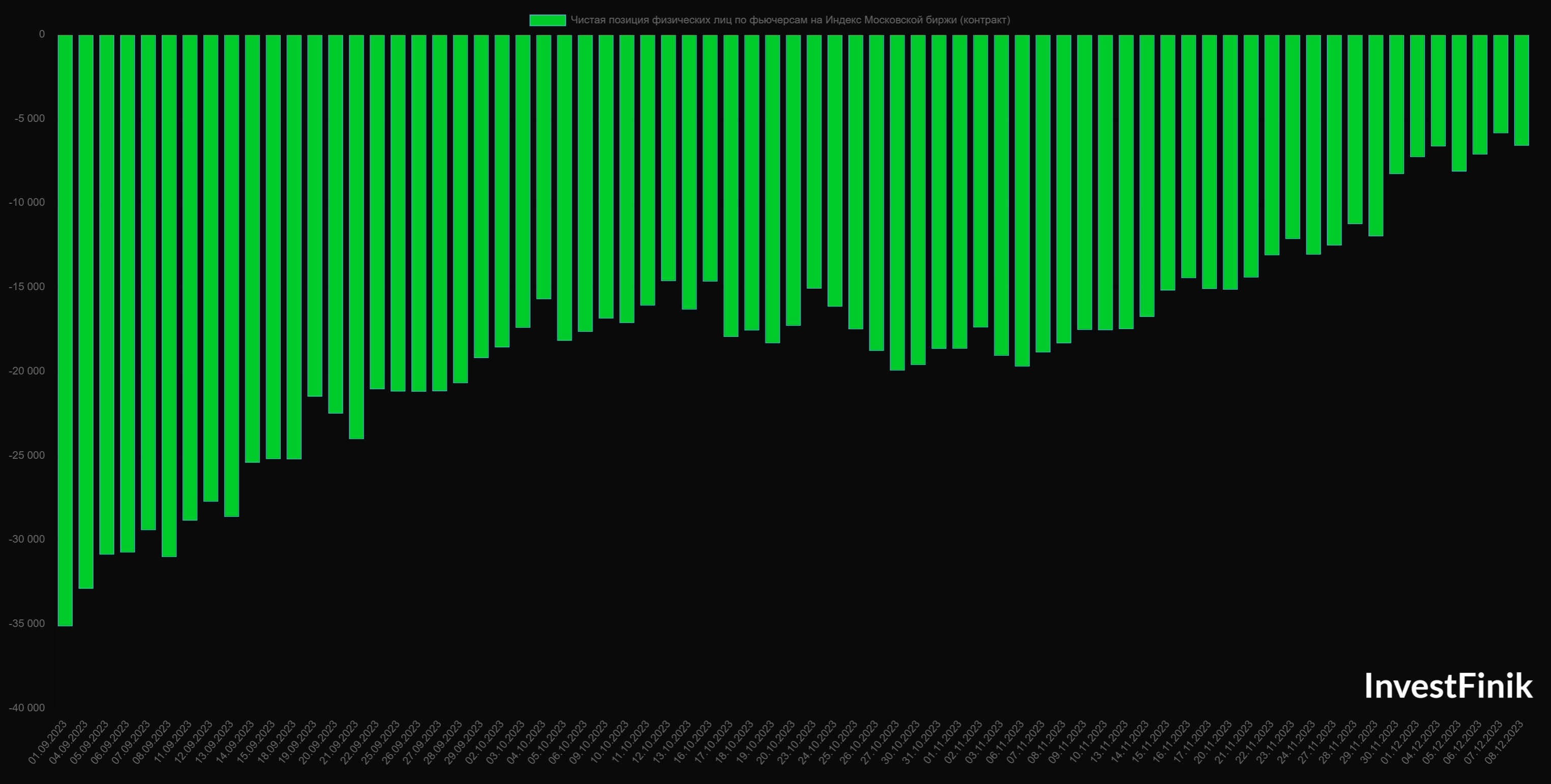 По состоянию на пятницу чистый объем "коротких" позиций у физических лиц составил -6,6 тыс. контрактов, к примеру на начало осени он был равен 35 тыс.
