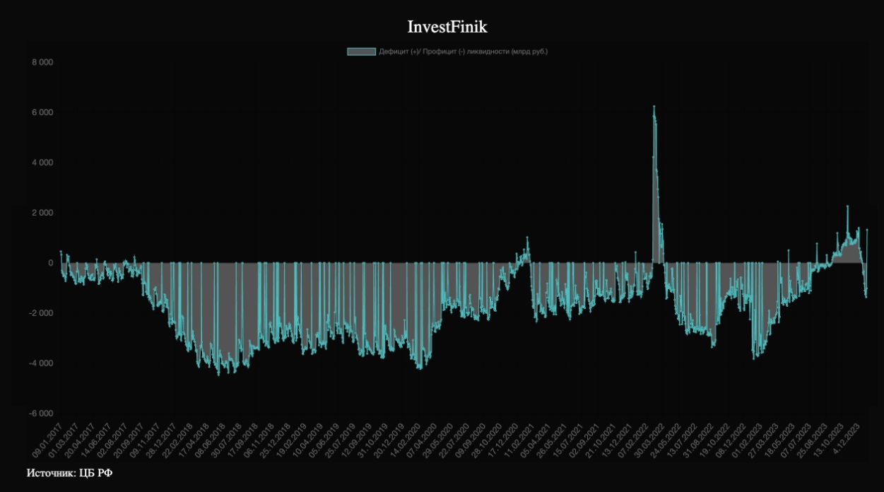 На протяжении практически всего прошлого года в рублевой зоне наблюдался заметный профицит ликвидности, год и вовсе начался с 3,8 трлн рублей профицита. Вполне вероятно, что избыток рублей был направлен на финансовые рынки, как на фондовый, так и на валютные рынки. И если посмотреть на динамику рублевой ликвидности, то именно создание ее дефицита смогло остановить падение рубля. В конце августа на банковском рынке ситуация с ликвидностью пришла к балансу, когда спрос был равен предложению. В дальнейшем на протяжении последующих трех месяцев система находилась в состоянии дефицита рублей. Корреляция курса рубля с ликвидность банковского сектора приводит к заключению, что падение рубля в прошлом году было вызвано спекулятивными действиями участников рынка.