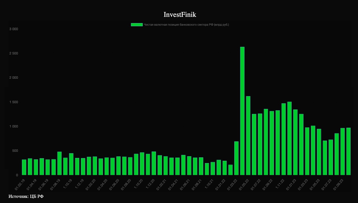 Ослаблять рубль помогали и российские кредитные организации, которые, согласно данным Банка России, заняли чистую «короткую» позицию против национальной валюты. К началу 2023 г. она была равна 1,3 трлн рублей, тогда как в 2019-2021 гг. ее объем в среднем составлял порядка 380 млрд рублей. Стоит также отметить, что столь высокая прибыльность кредитных организаций в прошлом году была вызвана в том числе и валютной переоценкой.