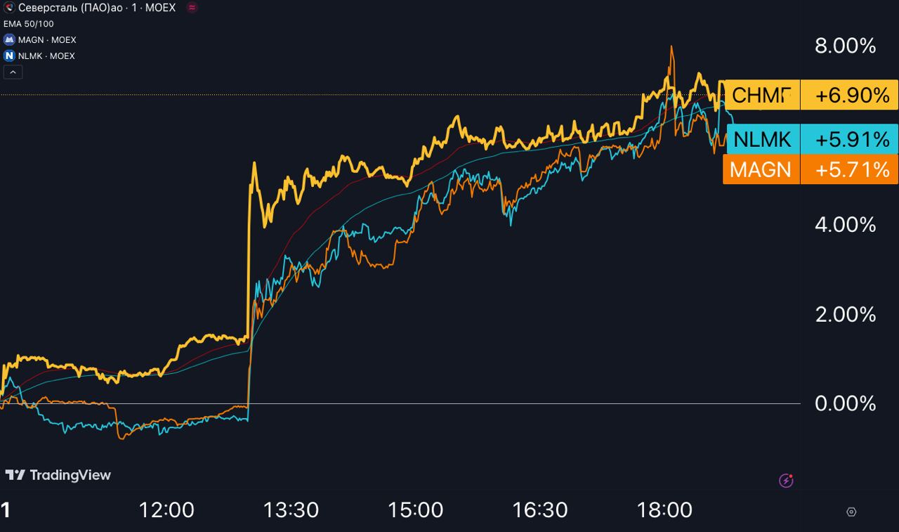 Фактор роста №1 в секторе — ожидание возобновления дивидендных выплат. Любая сколько-нибудь позитивная новость, как мы сегодня видели, приводит к росту всей тройки металлургов.
