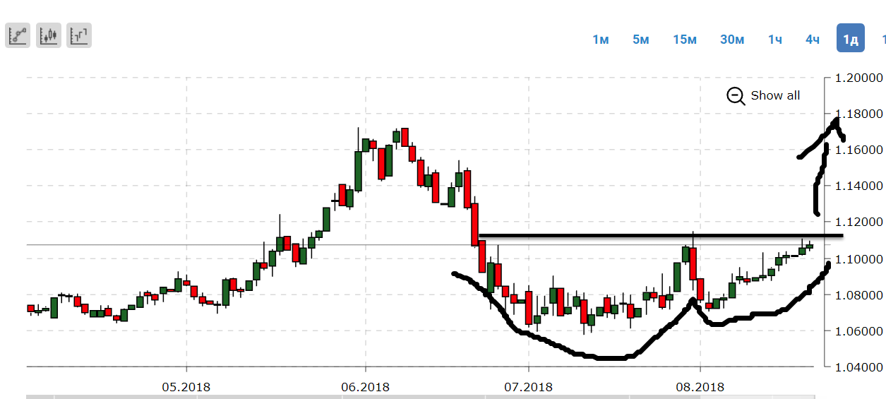 Если смотреть на график олтношение Brent к WTI то там всё очень похоже на фигуру ТА чашка с ручкой или стандартный двойной разворот. Исходя из этой картины мы можем предположить движение в спреде обратно к соотношению 1,16 и выше. Это может означать, что если нефть начнёт краткосрочный рост то нефть брент должны вынести наверх больше чем wti. В случае же падения brent должен проявить большую устойчивость.